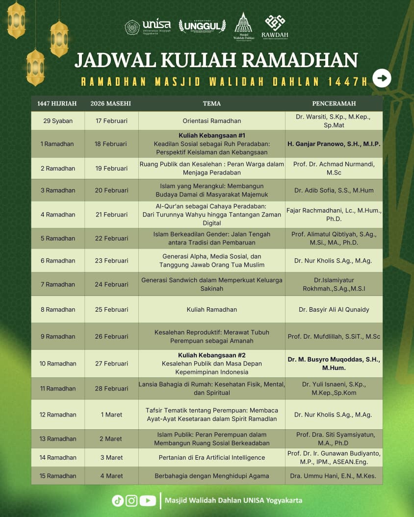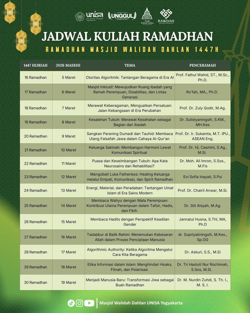 Prof. Fathul Wahid, S.T., M.Sc., Ph.D., Rektor Universitas Islam Indonesia (UII) Yogyakarta.YOGYAKARTA, Masjid Walidah Dahlan UNISA – Perkembangan teknologi digital yang semakin pesat telah mengubah cara manusia memperoleh informasi, termasuk dalam memahami ajaran...