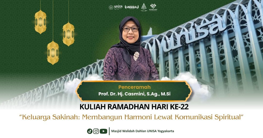 Dalam Kuliah Ramadan hari ke 23. Selasa, 10 Maret 2026 (22 Ramadhan 1447 H) bertemakan “Keluarga Sakinah: Membangun Harmoni Lewat Komunikasi Spiritual.” Prof. Dr. Hj. Casmini, S.Ag., M.Si. penceramah malam itu, menuturkan bahwa keberhasilan puasa seseorang tercermin dari bagaimana ia berkomunikasi dengan orang-orang terdekatnya. Salah satunya dimulai dari komunikasi dengan keluarga. Komunikasi spiritual merupakan seni berinteraksi yang mengikutsertakan ruh dan kesadaran ketuhanan dalam setiap kata yang terucap. Hal ini menjadi penting karena dalam manifestasi rumah tangga, konflik sering kali muncul bukan karena kurangnya frekuensi komunikasi, melainkan karena hilangnya penghargaan dan empati dalam komunikasi tersebut