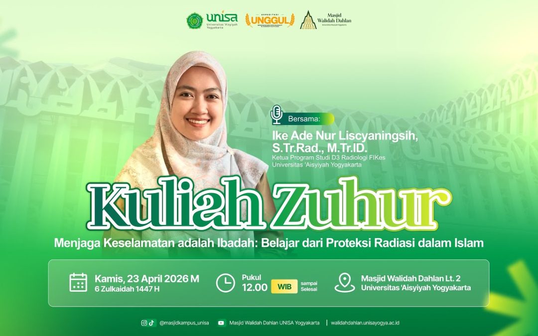 Yogyakarta – Masjid Walidah Dahlan Universitas ‘Aisyiyah (UNISA) Yogyakarta, kembali menggelar Kuliah Zuhur dengan pembahasan yang mengaitkan nilai keislaman dengan praktik profesional di bidang kesehatan.